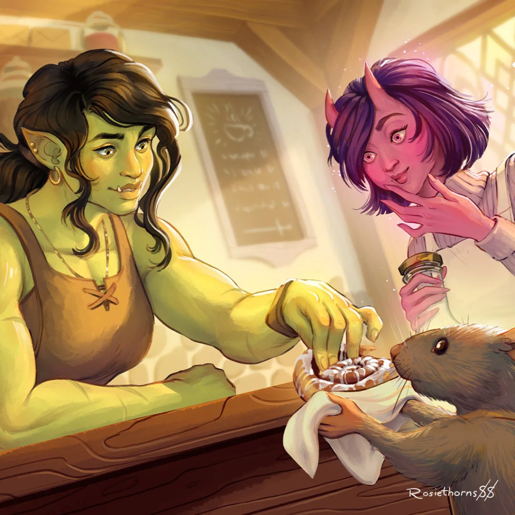 What impressed me the most was the portrayal of the protagonist, Viv. She undergoes a remarkable transformation from a battle-hardened orc to a compassionate coffeehouse owner. Viv no longer wants to fight and successfully strives to showcase her softer side. She’s just plain nice and magnetically appealing to those around her. Even when her existence is threatened, she maintains calm and composure. This inner strength is also thanks to her friends, who support her in their own unique ways.